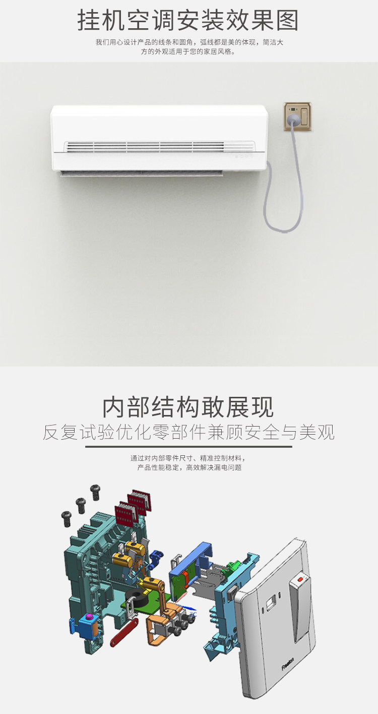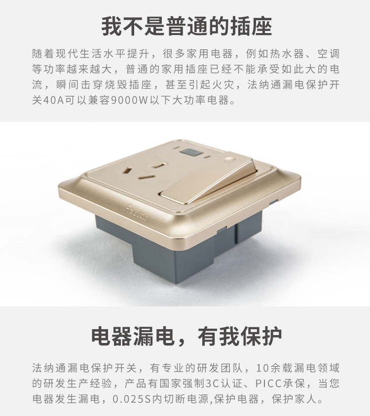 Farnaton 16A earth leakage protector empty open switch hanging air conditioning water heater with leakage and socket 86 type