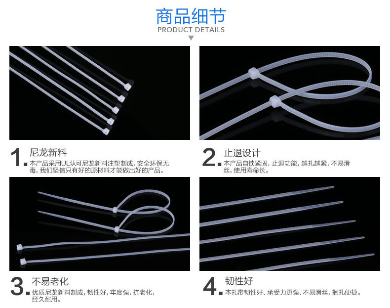Plastic Bandage 4 * 150 Self-Locking Nylon White Tie Wire Bundle Wrap