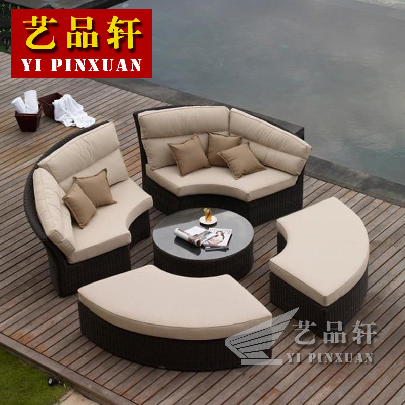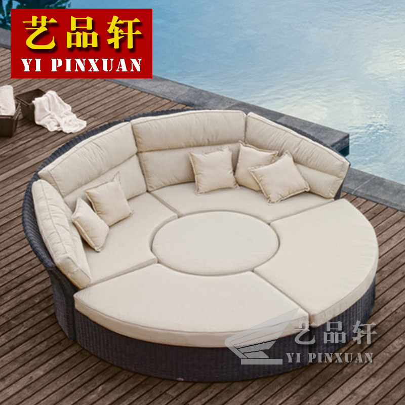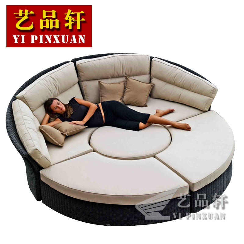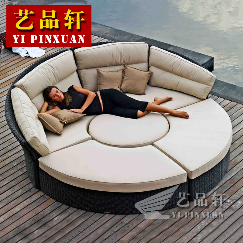 Outdoor Lying Bed Open-air Patio Furniture-Swimming Pool Imitation Rattan Sofa Casual Balcony Beach Deck Chair Big Round Bed