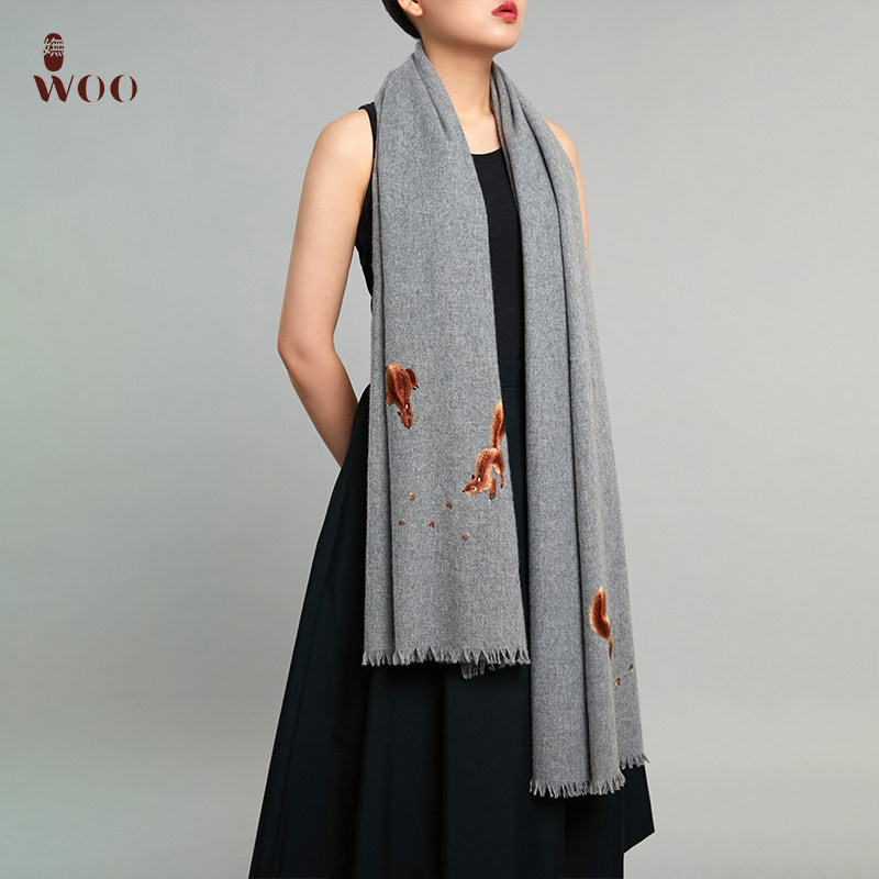 woo woo fairy hand embroidered cashmere scarf woman spring autumn long style pure color scarf with soft dual-use 100 lap-Taobao