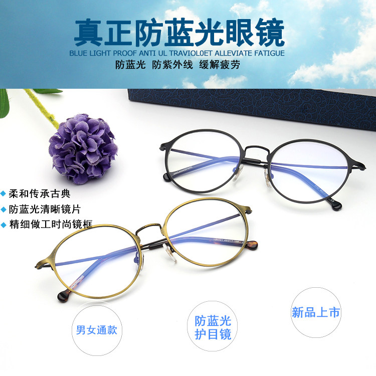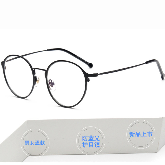 Metal frame Men and women anti-blue light glasses Computer eye protection Flat light Anti-radiation fatigue students with myopia discoloration