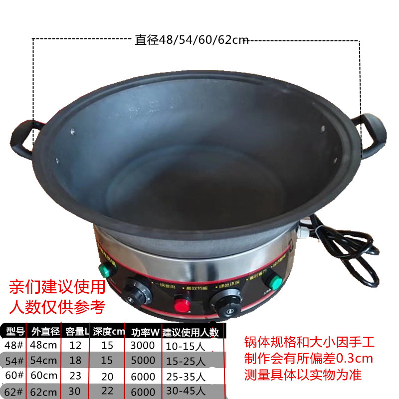 Commercial high-power electric frying pan construction site canteen iron pan extra-large integrated capacity farm multifunctional cooking 50cm hot pot