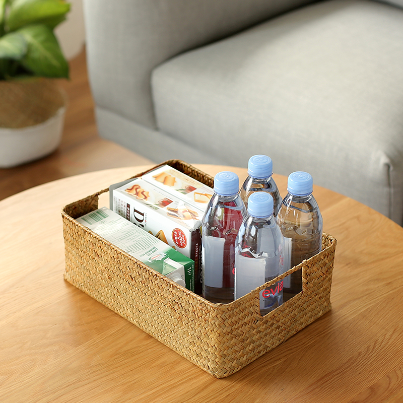 Straw rectangular storage box Seaweed rattan woven bamboo woven storage basket Desktop snack storage basket storage basket