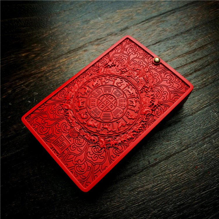 Large paint carved paint red cigarette box Play tray Sbaho Nine gossip free engraving
