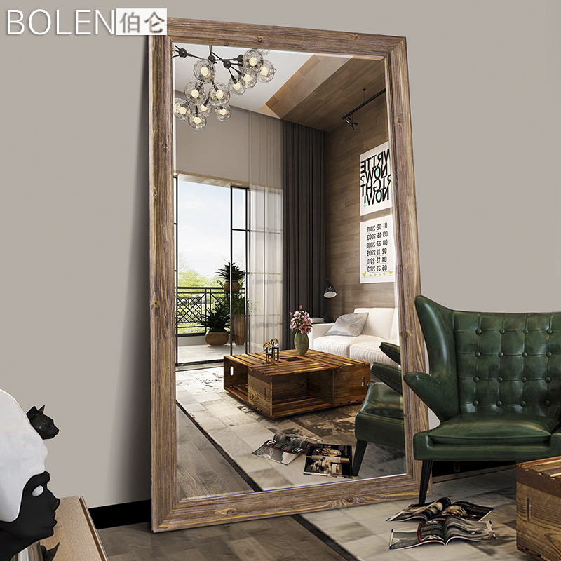 BOLEN full-body mirror Full-body floor-standing mirror Solid wood full-body mirror Nordic industrial style clothing store large mirror three-dimensional