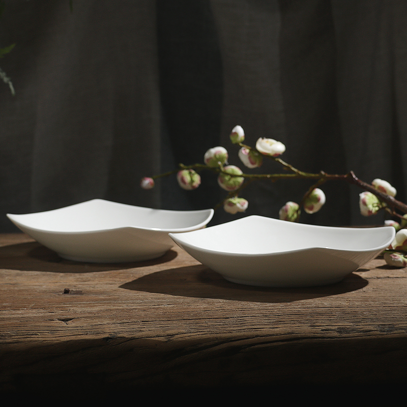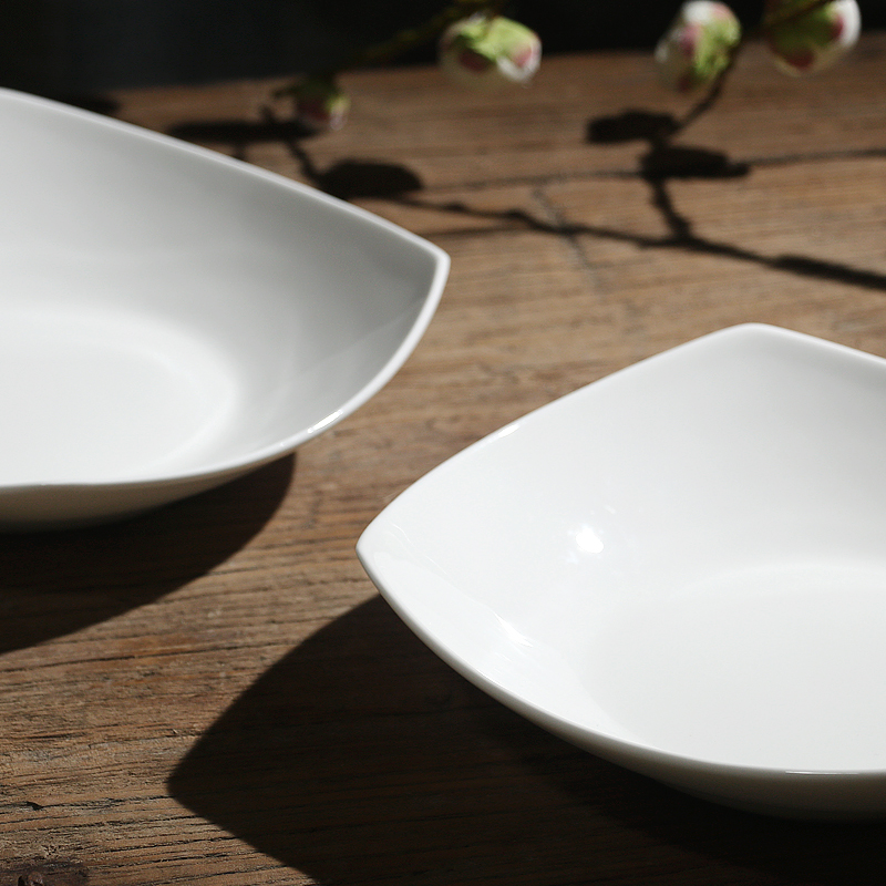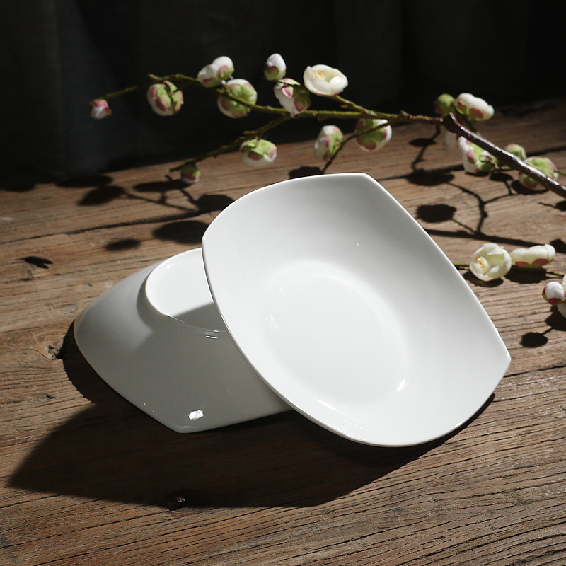 9 inch square square soup plate deep plate ceramic household plate plate white bone china Western salad heart plate