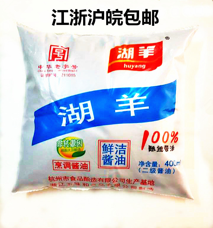 Zhejiang Lake Goat Soy Sauce Fresh Soy Sauce 400ml * 30 Packs Bagged Sauce Duck Sauce Fish Sauce Meat Cooking Brewed Soy Sauce