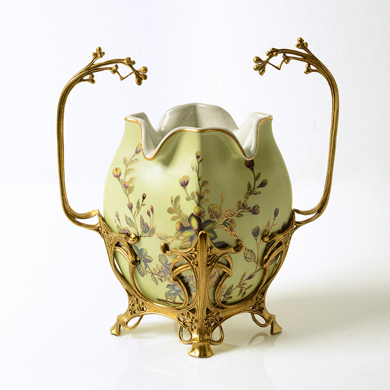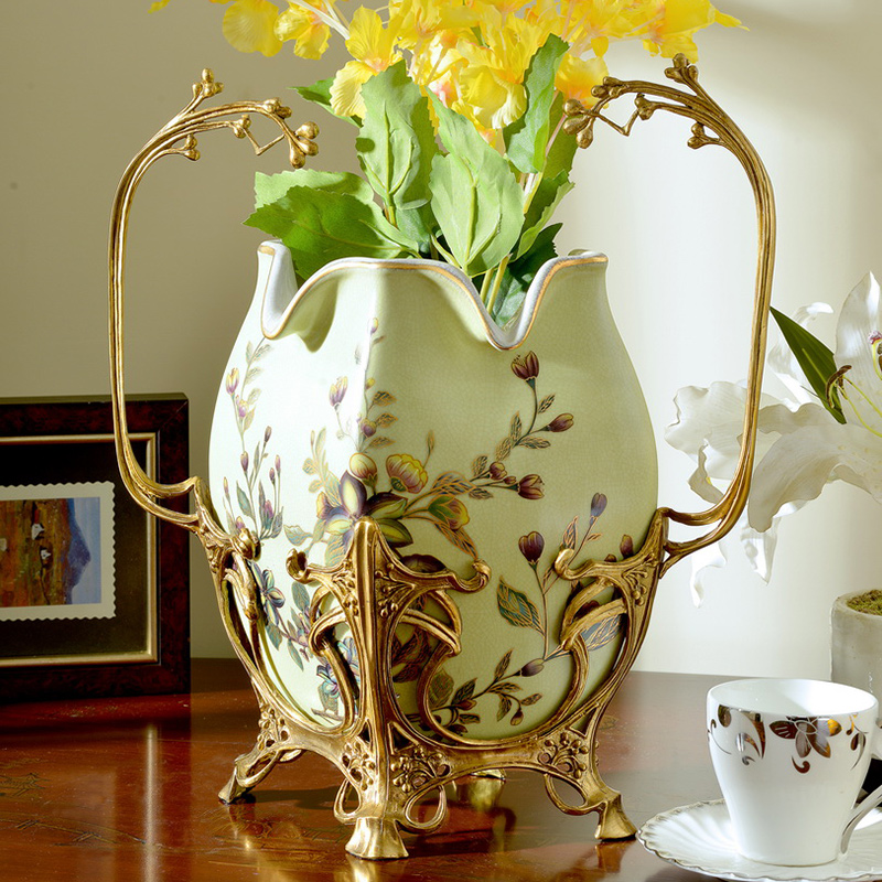 American European style creative high-end warm dining room dining table Ceramic with copper flower arrangement bottle Home decoration decoration decoration