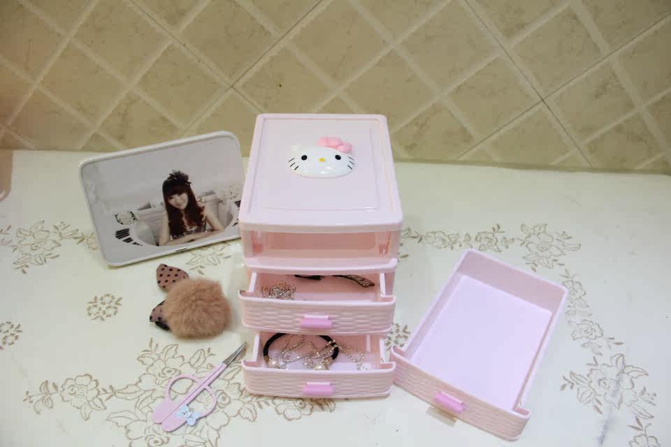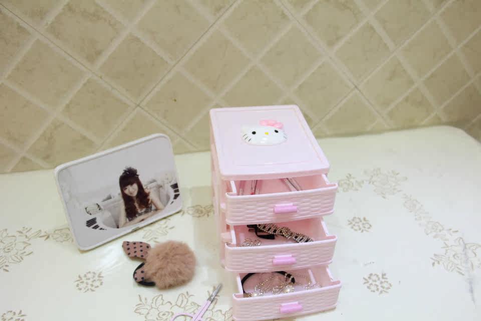 Cute cartoon HELLO KITTY cat small things desktop cosmetics jewelry box hair clip hair accessories drawer storage box
