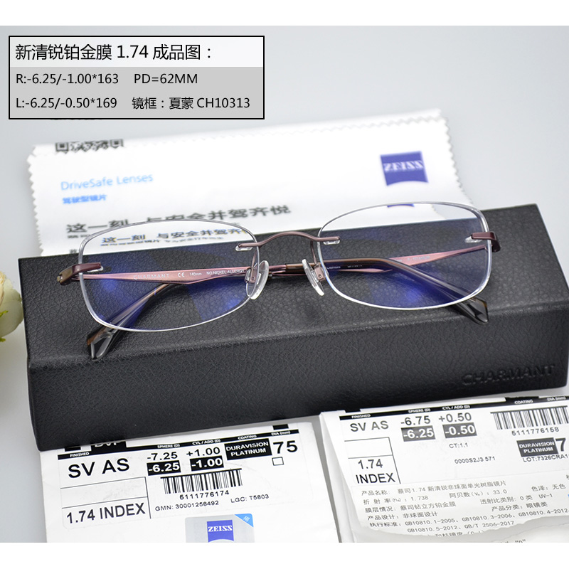 Zeiss Lens 1 74 New Qingrui 1 67 Platinum Film 1 60 Anti-Blue Light Film Myopia Resin Aspherical Glasses