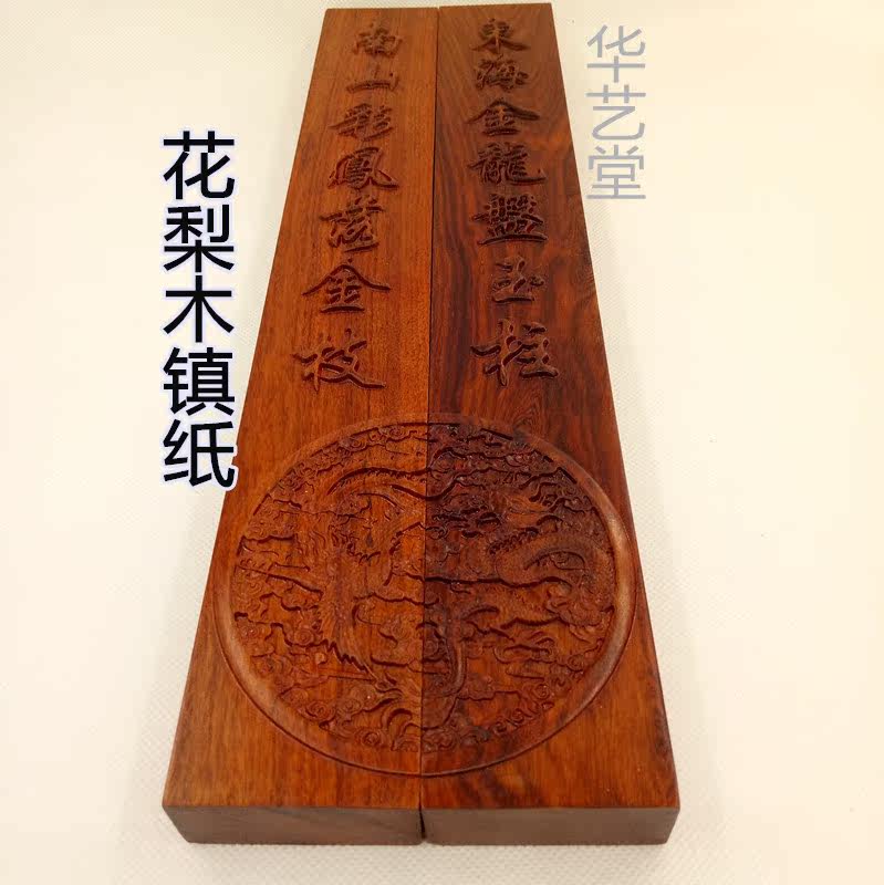 Large African rosewood mahogany dragon and phoenix paperweight calligraphy town ruler black rosewood carving brush press paper