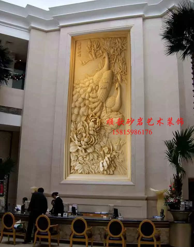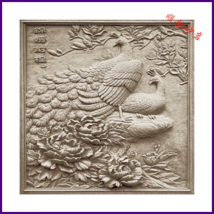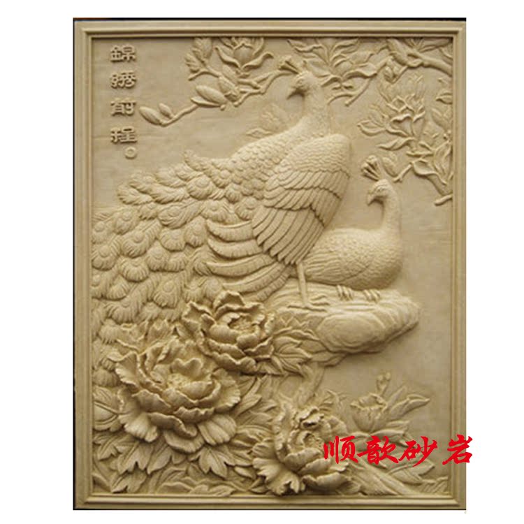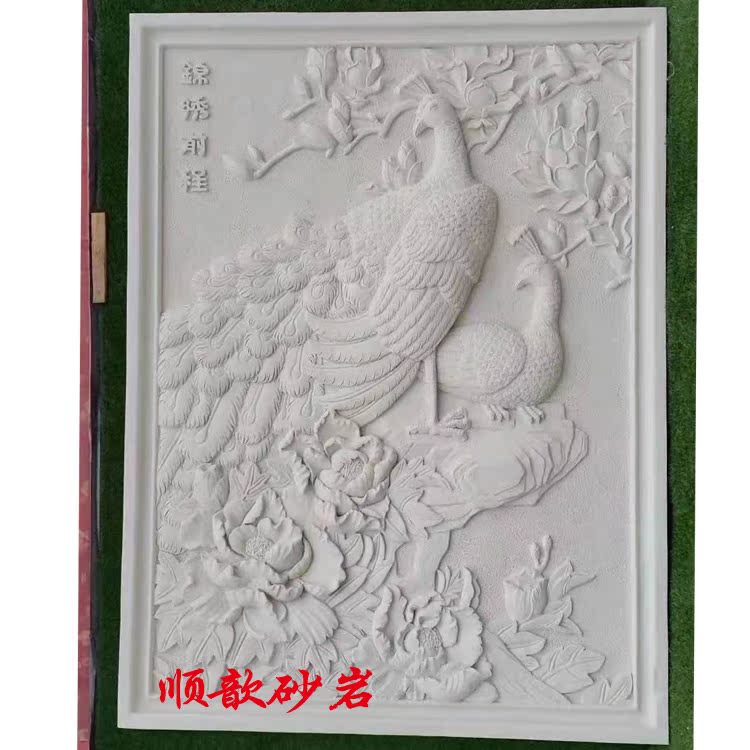 Shunxin Sandstone Home Hotel Hang Painting Reliefs Sandstone Solid Wall Painting Hall Bar with Painted Brocade Embroidered front Ching