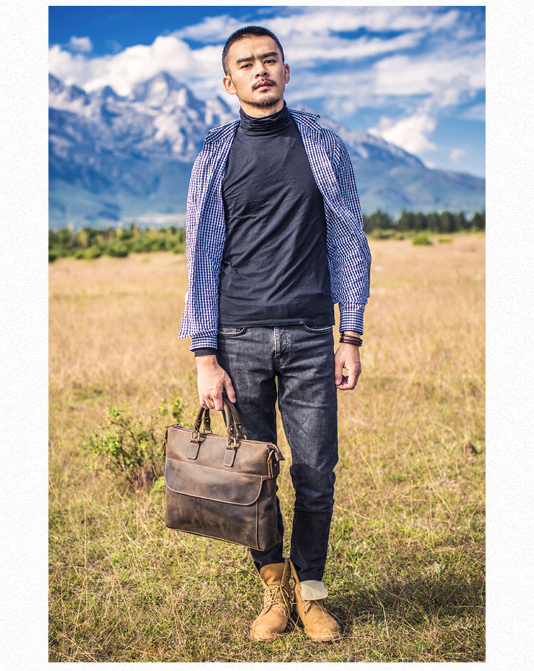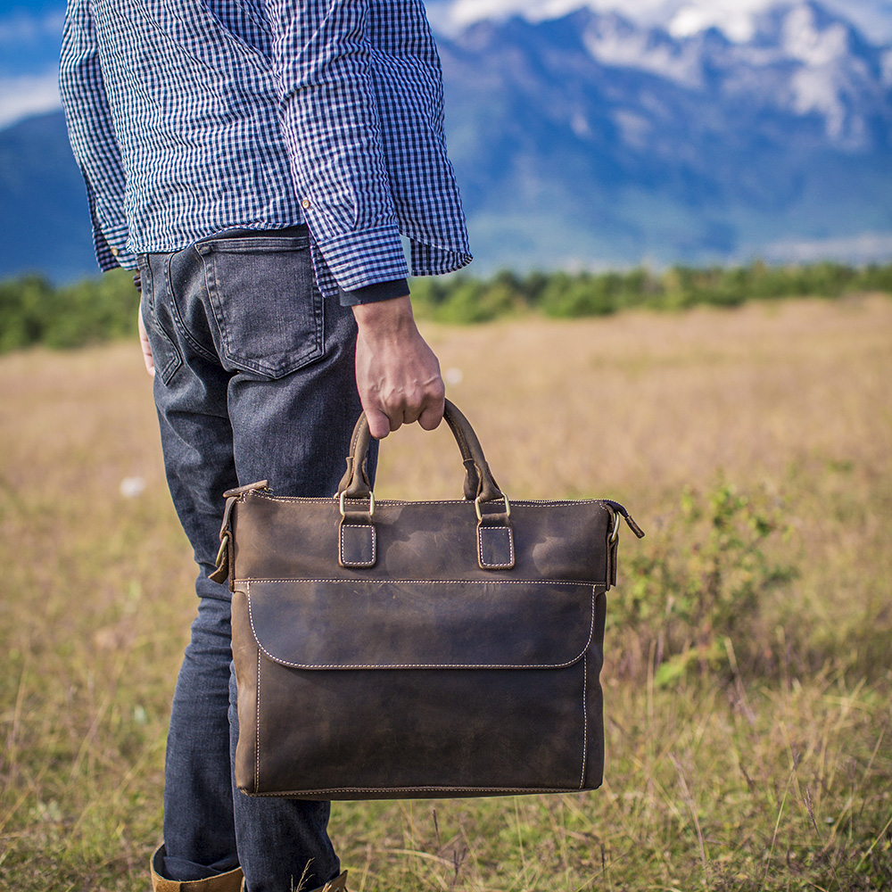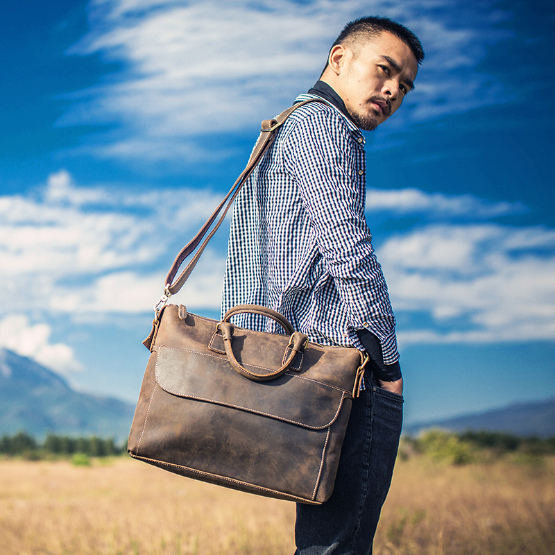 Men's bag Leather handbag Crazy Horse leather shoulder slant across the bag horizontal section of the first layer cowhide business portable briefcase computer bag