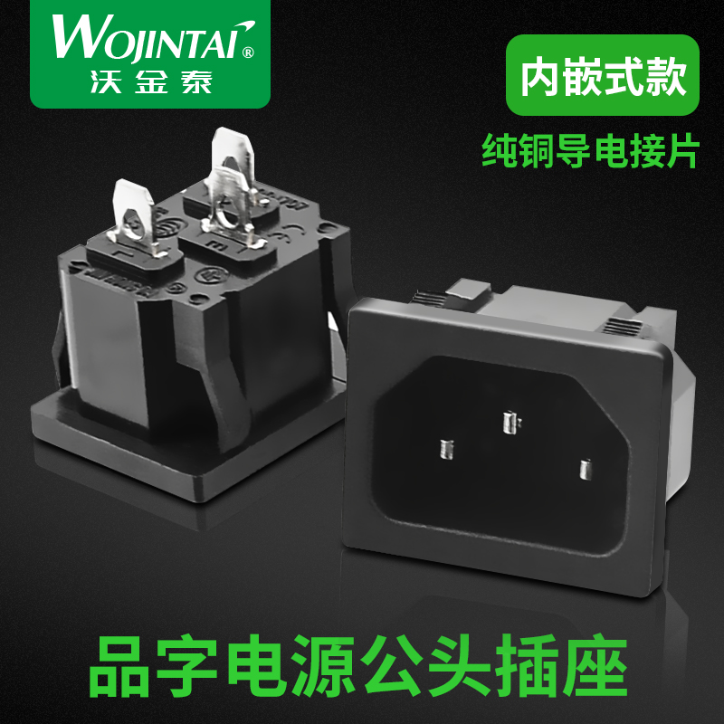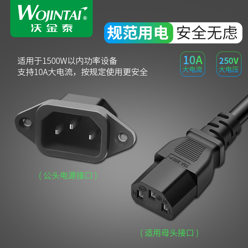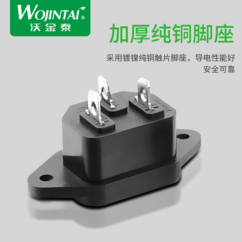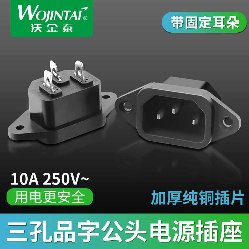 C14 socket AC power outlet Pin word socket 10A pure copper 3 feet with ear card computer rice cooker