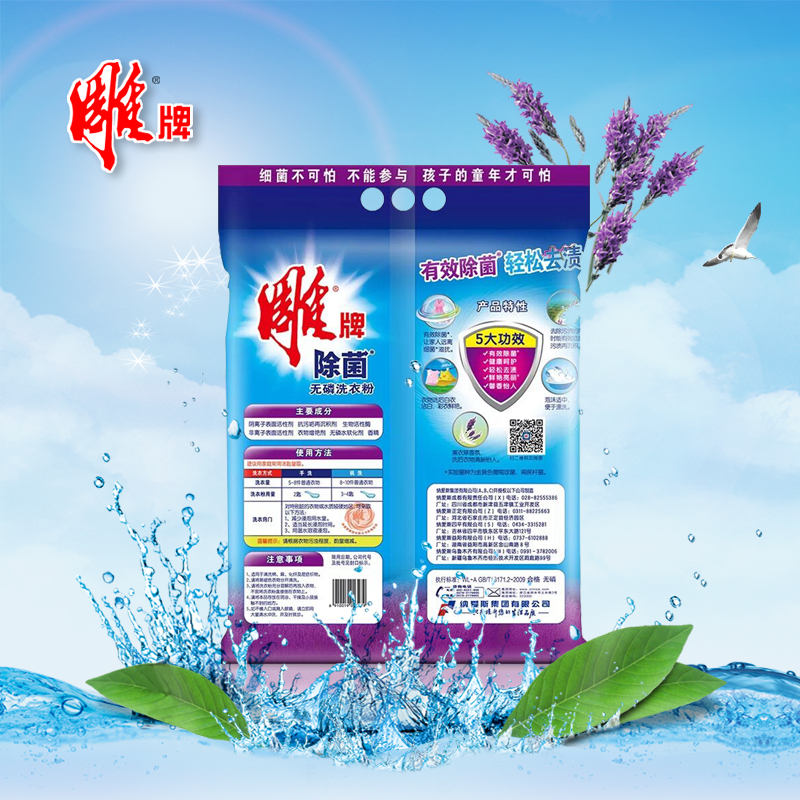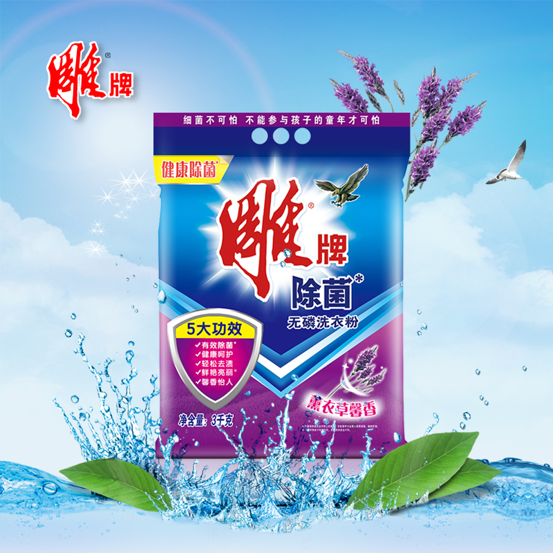 Carved brand sterilization phosphorus-free laundry detergent 3kg bag lavender incense hand washing machine wash powerful decontamination