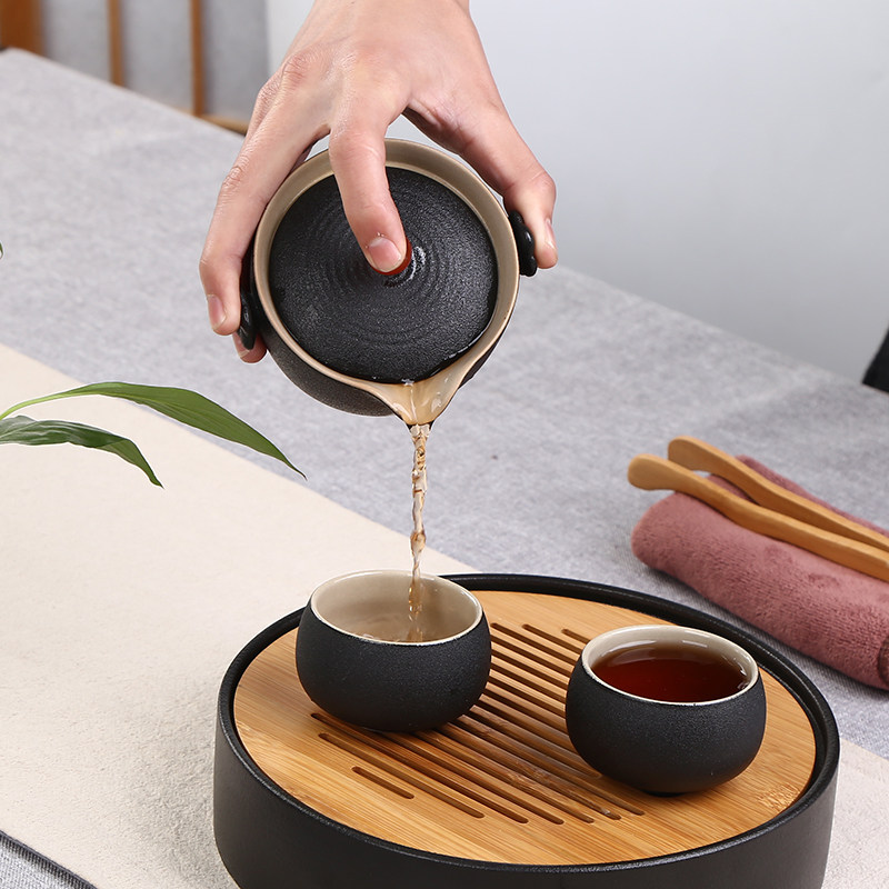 Ceramic tea set set coarse pottery a pot of four cups travel office personal kung fu tea set teapot teapot teapot