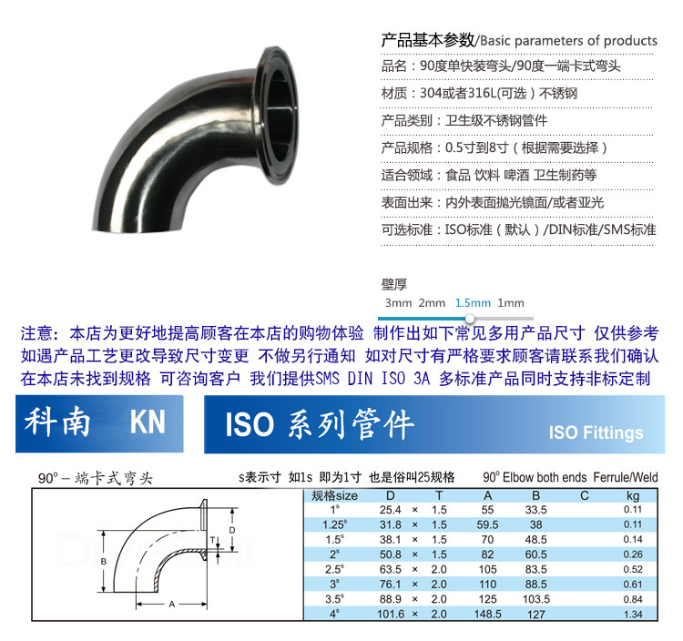 Conan Fluid recommends stainless steel 304 sanitary welded 90 degree stamping inside and outside polished single card elbow