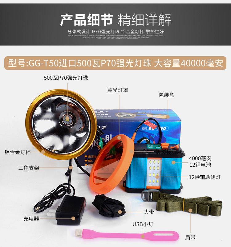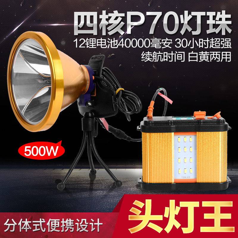 12 LITHIUM POWER 1000W HIGH POWER LED HEADLIGHTS LIGHT CHARGE ULTRA BRIGHT FISHING MINER'S LAMP TWO-PIECE HEAD-ON LONG SHOT HERNIA