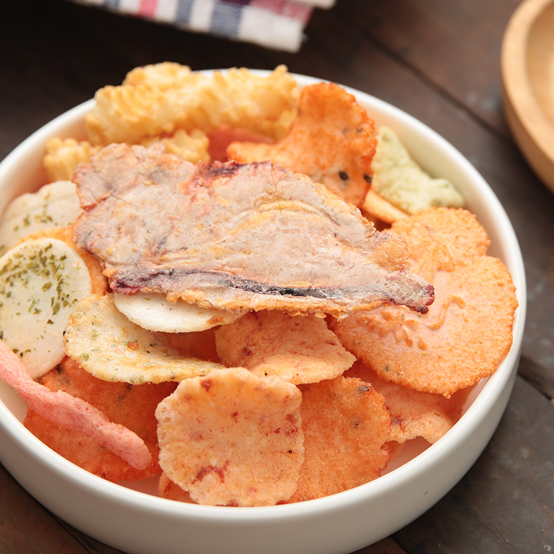 Japan imported puffed snacks Ikedaya assorted seafood squid shrimp cake rice fruit senbei 120g large bag