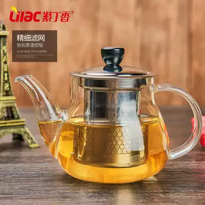 Lilac explosion-proof heat-resistant glass cooking teapot kung fu tea red tea with stainless steel filter tea cup household kettle