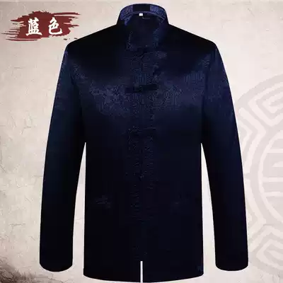 Middle-aged and elderly men's Tang suit long-sleeved shirt Chinese men's middle-aged costume Hanfu father grandfather spring summer shirt