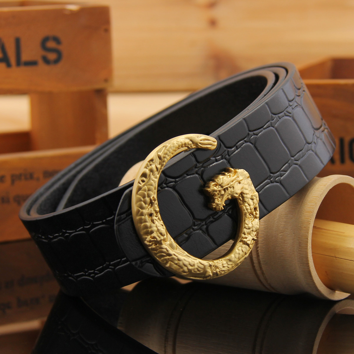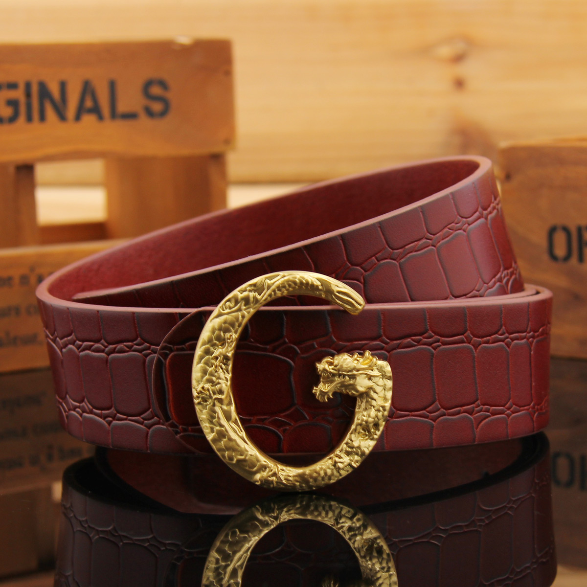 Love Blue Castle fashion crocodile pattern head layer pure cowhide men's belt leather faucet G copper collar belt youth Korean version