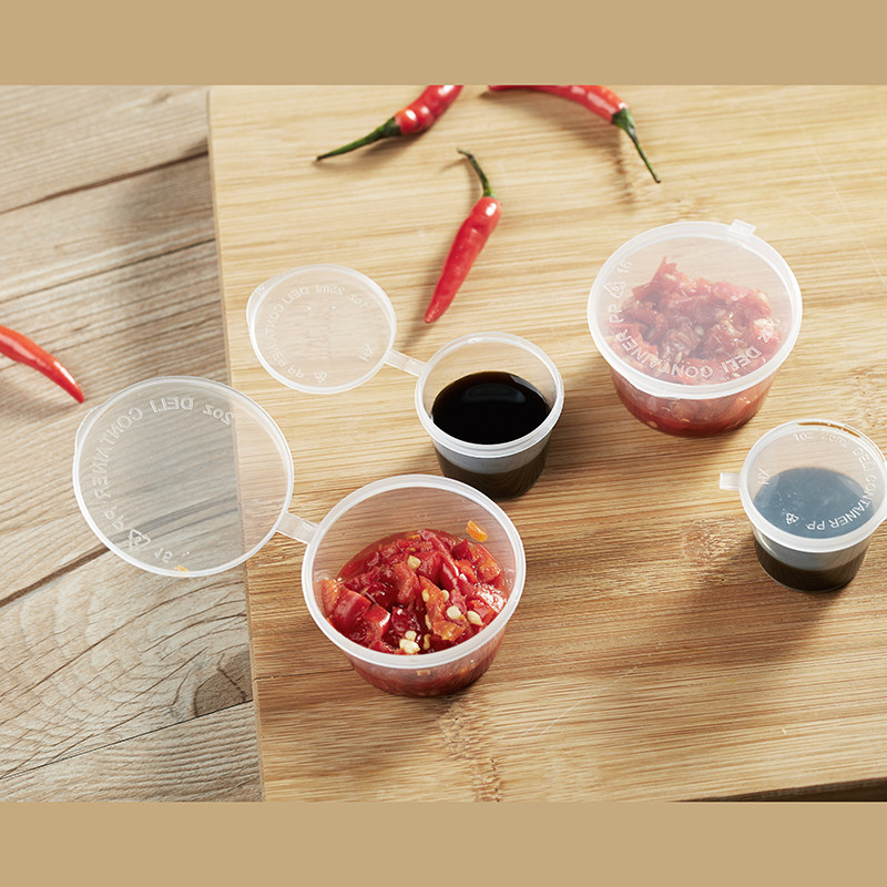 Disposable sauce box with lid seasoning cup takeaway small dipping box packed with split chili oil vinegar round soup bowl