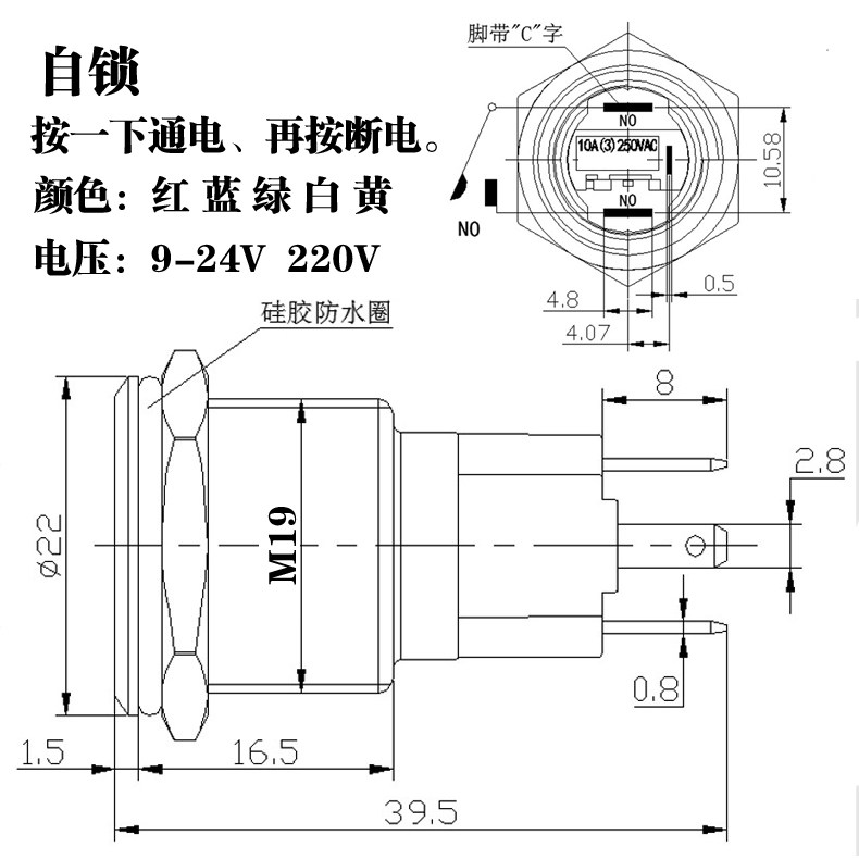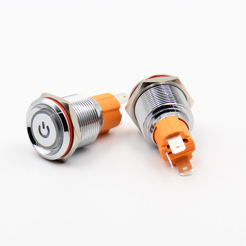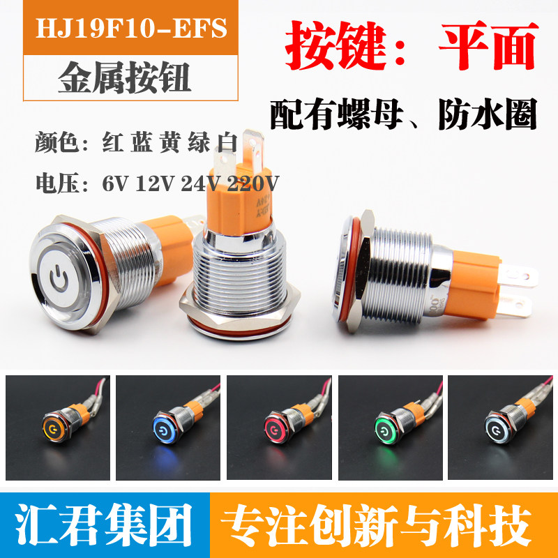 Huijun 19mm metal button switch self-locking ring with light with symbol LED light high current 10a start stop