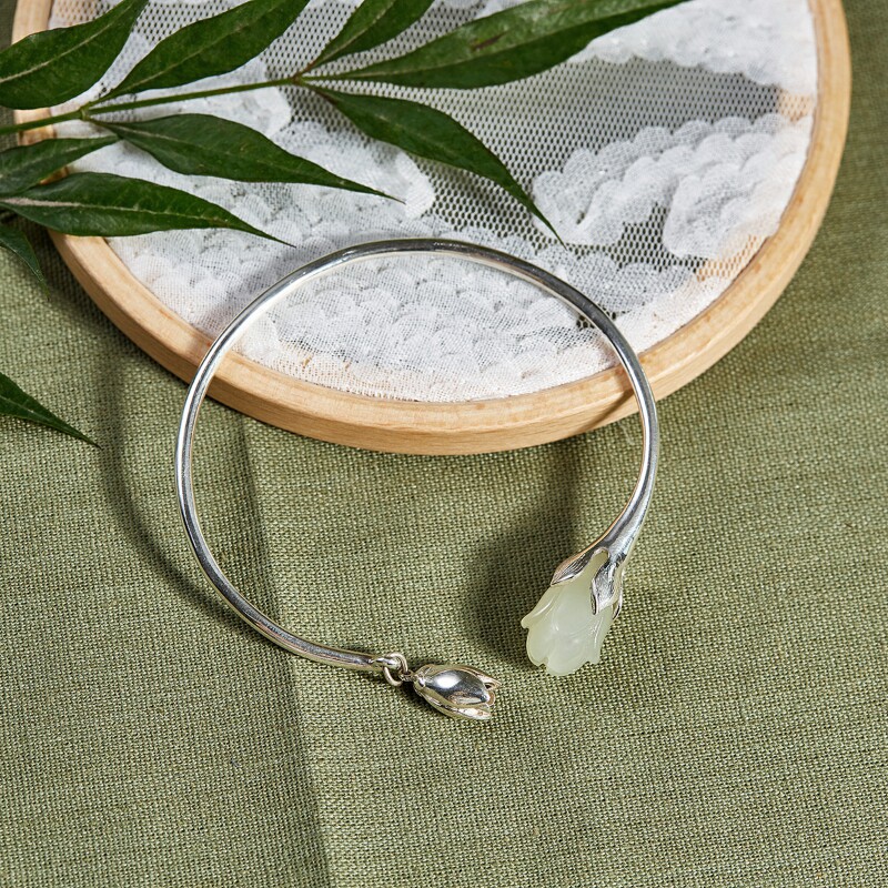 Xisu niche design bracelet cold wind open silver bracelet female magnolia flower and Tianyu sterling silver jewelry gift