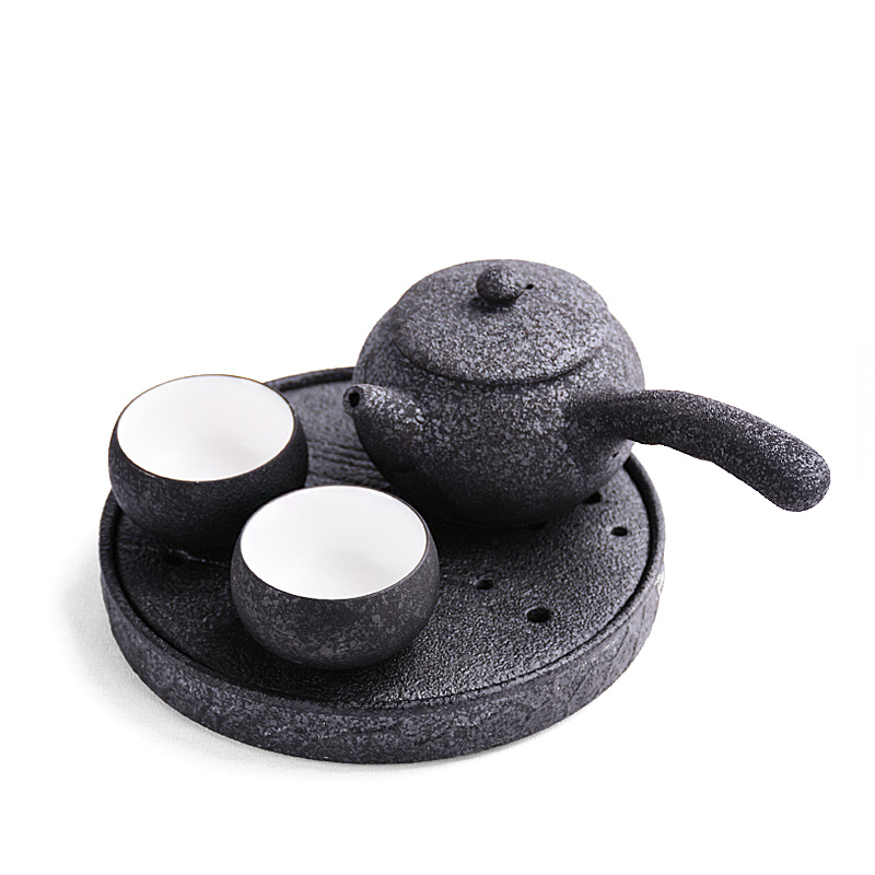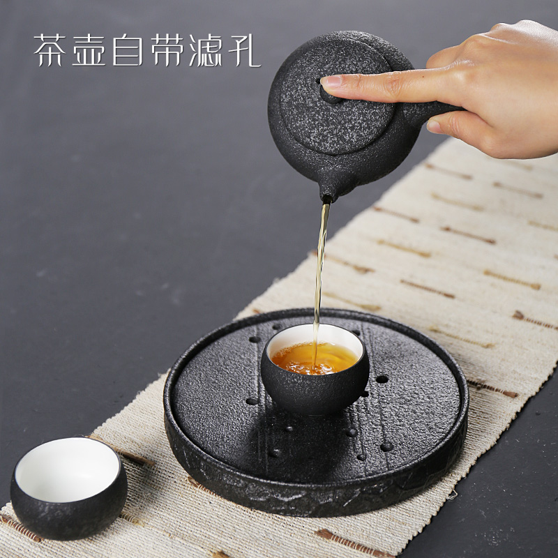 Rust glaze dry bubble set Coarse pottery tea plate Creative ceramic one pot two cups of pot bearing small water storage tea table tea