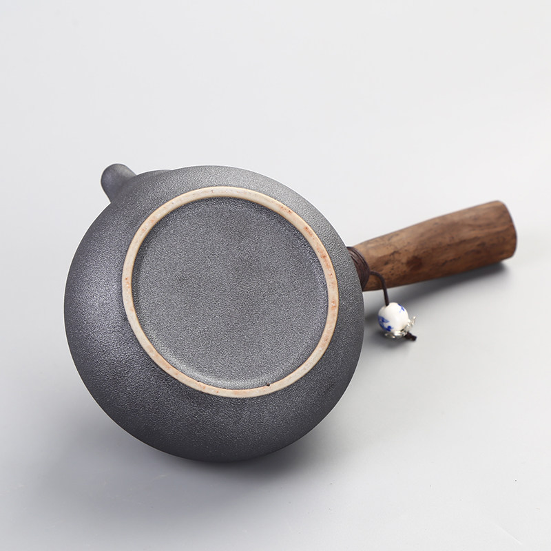 Side turn the pot ceramic cooking teapot Ru kiln open sheet black sandalwood handle teapot day style teapot ceramic utilitt tea accessories