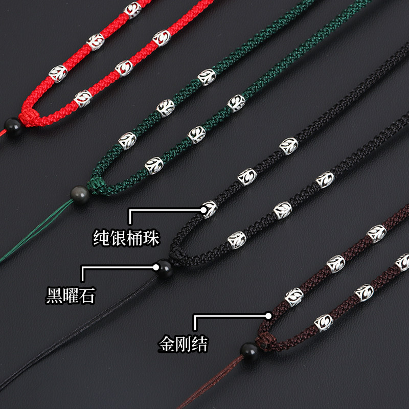 Black rope with sterling silver bucket beadsSterling silver bucket coffee rope with dark green rope with sterling silver bucket beadsRed rope with sterling silver bucket beads
