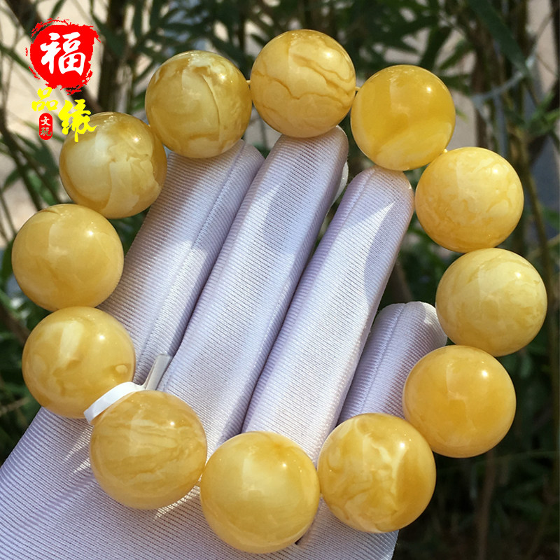 Natural true wax single circle bead hand string chicken fat yellow honey raw ore Baltic Russian material white flower male and female Buddha beads