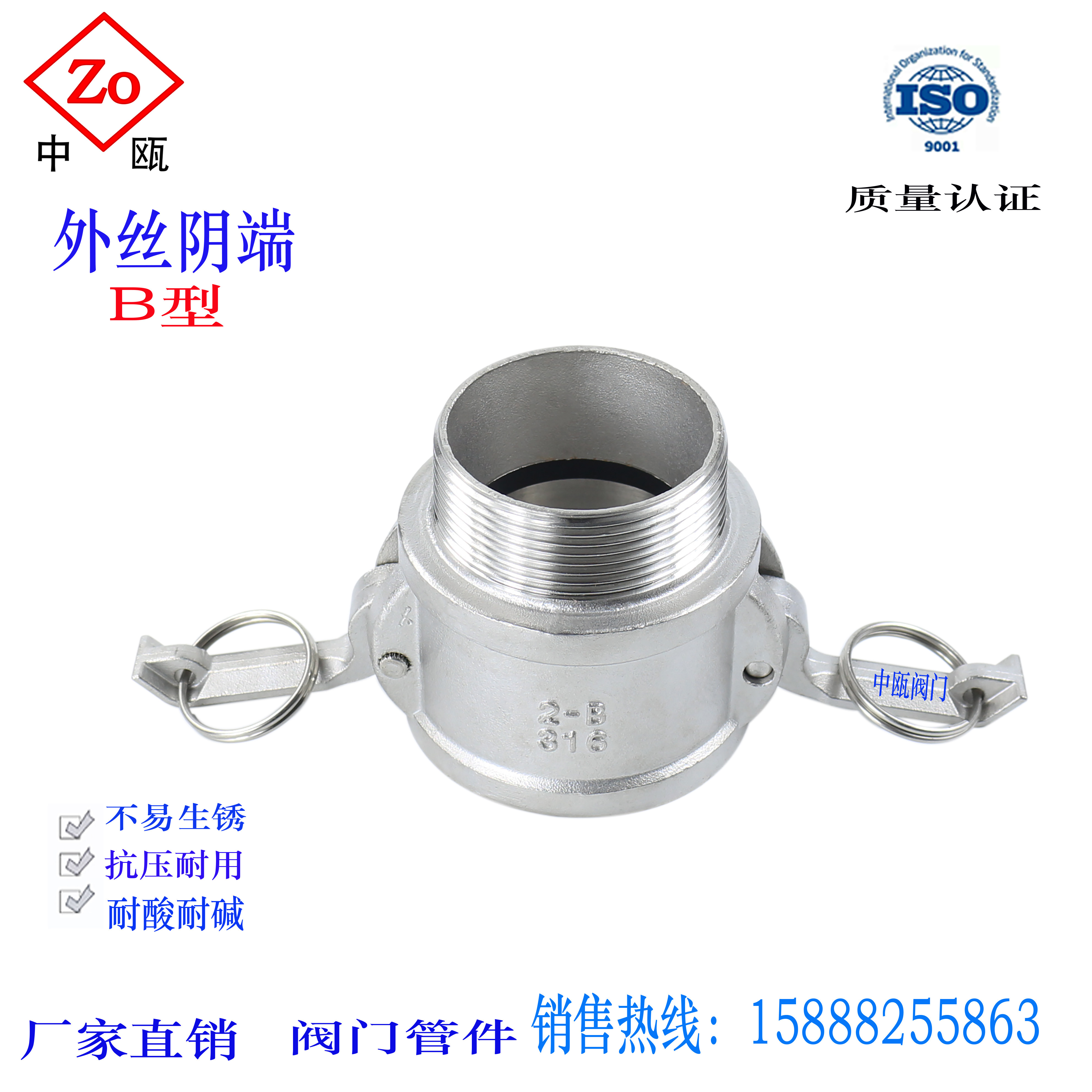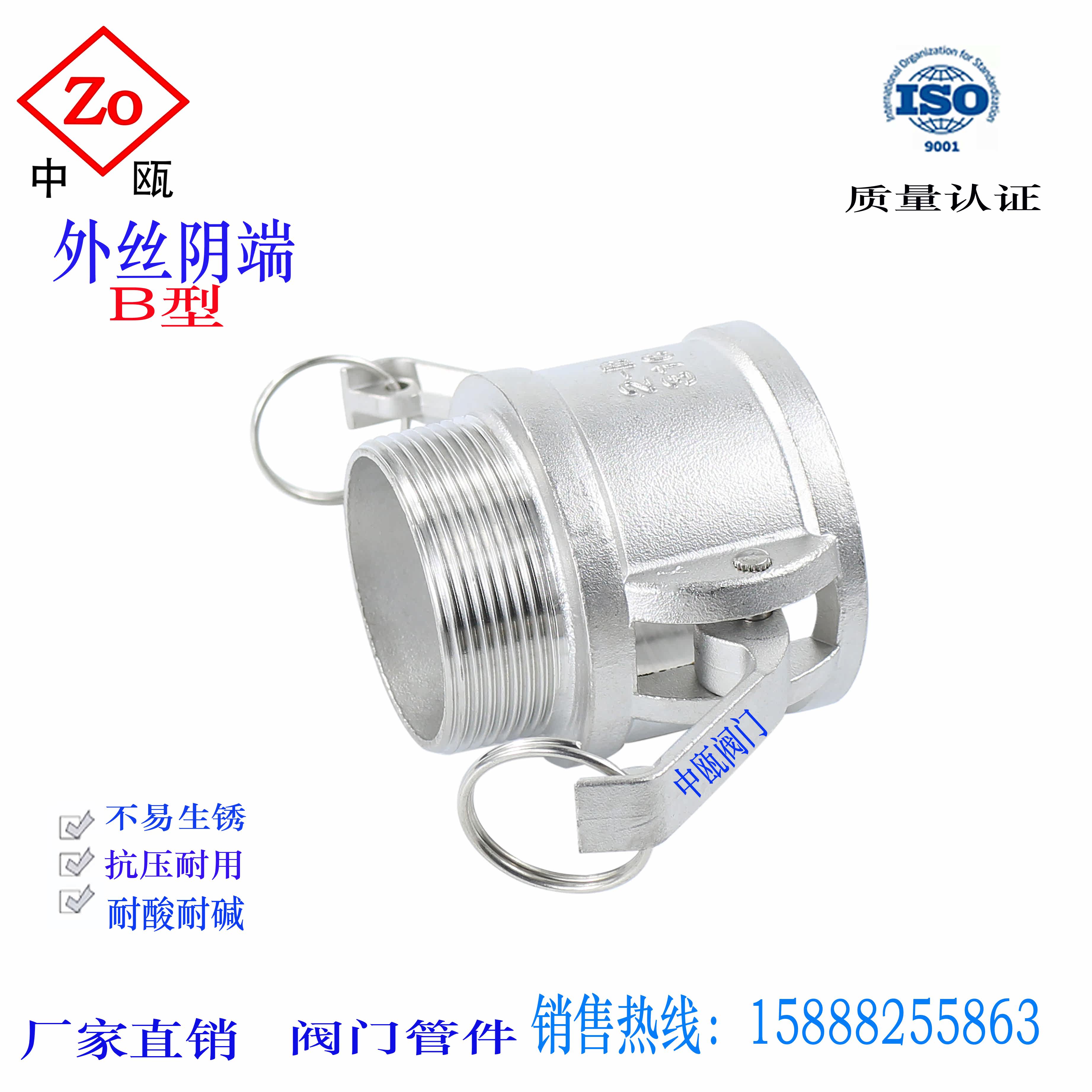 304 stainless steel B-type quick connector external thread connection wrench type quick plug connector male head water pipe pipeline oil tank