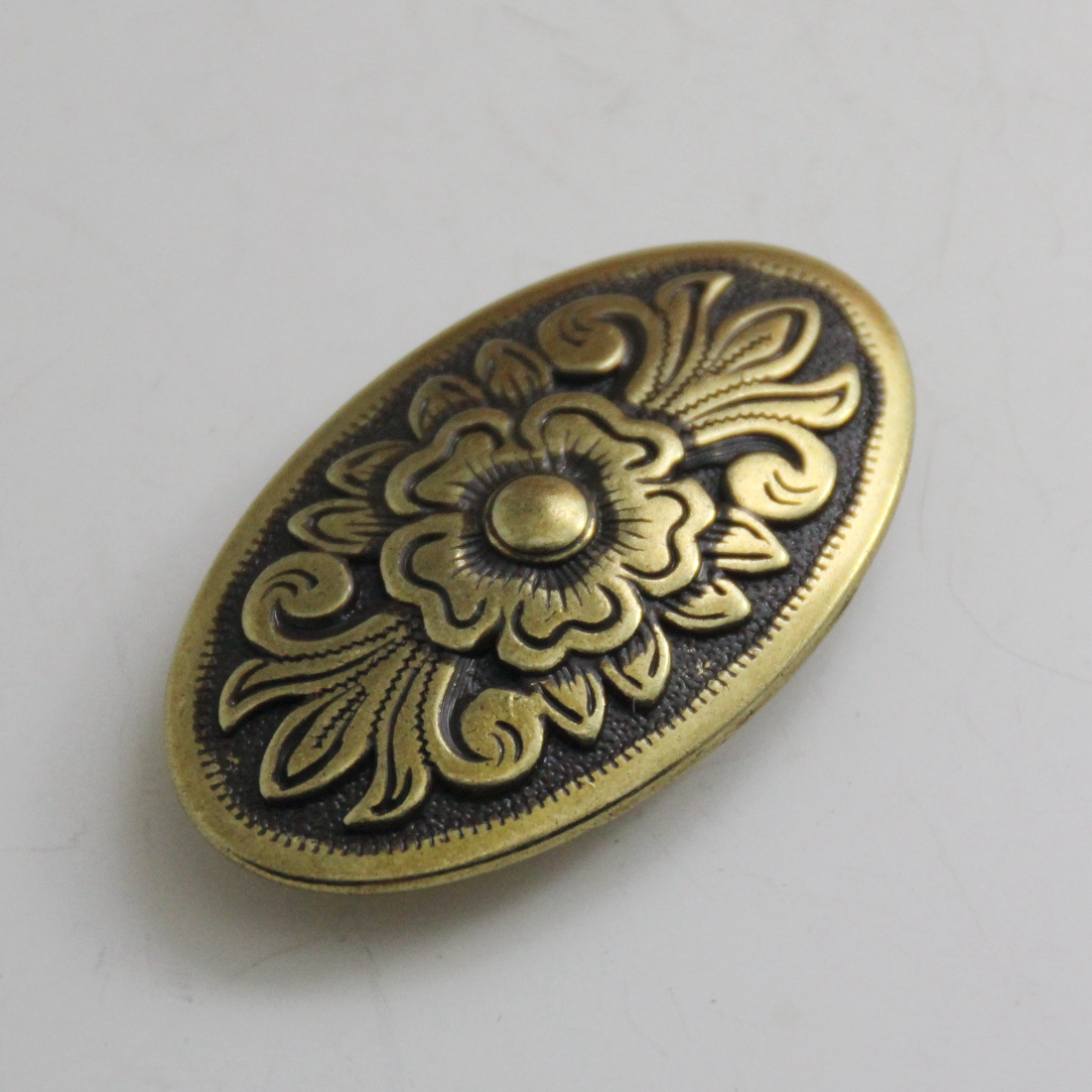 (Shun Kee Hardware) KBO02 Bronze oval Tang grass carved cloth buckle Leather decorative buckle bag buckle