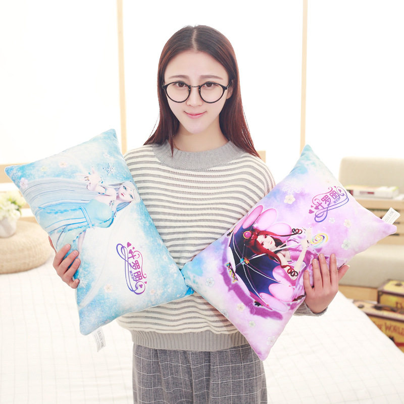Yeroi Doll Ice Princess Children Cartoon Plush Pillow Back Cushion Rectangular Pillow Girl Birthday Presents