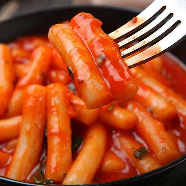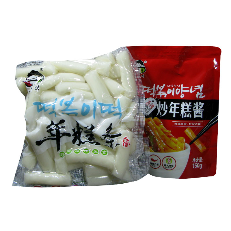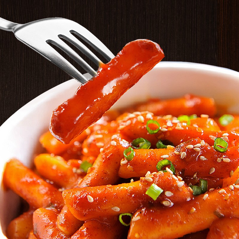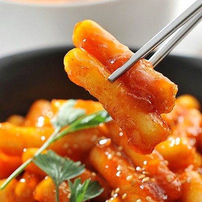 Korean-style fried rice cake strips with fried rice cake sauce combination