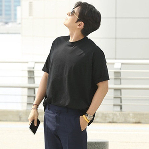Men short sleeve T-shirt 2022 new summer stars with the same loose round collar thin section big size and half sleeve undershirt tide