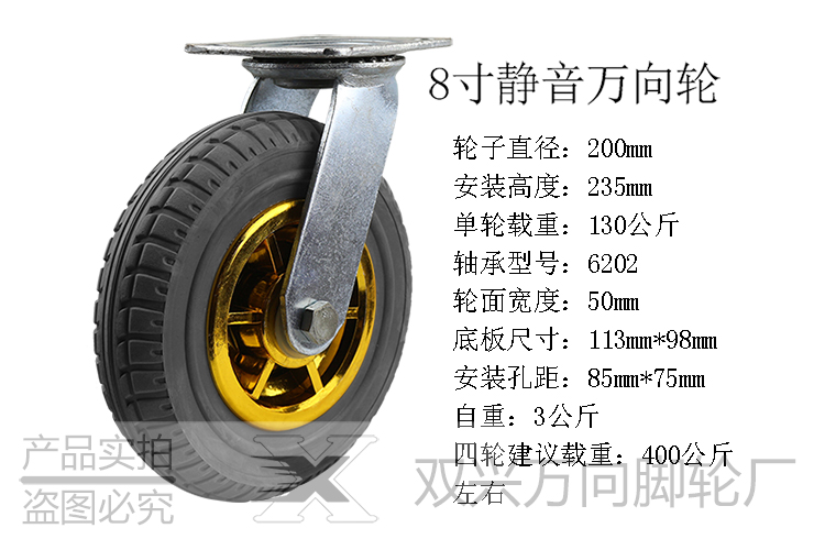 8 Inch Industrial Heavy Silent Universal Wheels Rubber Castors Flat Trolley Wheels wheels directional cart Equipment wheels