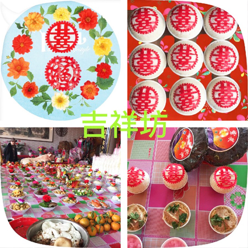 Swing table supplies Cut paper Small number circular double-delight flower rice bowls Flowers Chaoshan Gift Pendulum Table Cut Paper Fasting Flower Decoration