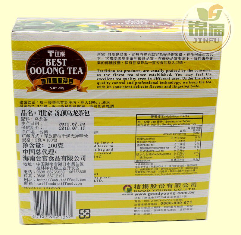 2 boxes of Taiwan frozen top oolong tea Taiwan alpine tea imported T family oolong tea bag 200g 100 bags