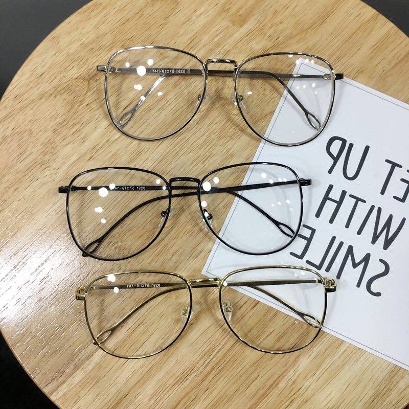 Korean Harajuku metal large frame myopia glasses female wild literature and art large round frame flat mirror vintage glasses frame