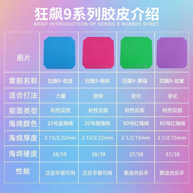 DHS Red Double Happiness 9 Blue Pink Purple Green Table Tennis Rubber Reverse Rubber 9 Colorful