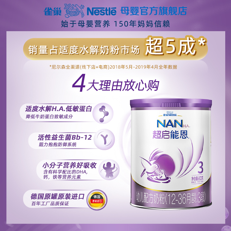 Nestlé's official flagship store, Chao Qi Neng En 3 Super Neng En 3 Stage 800g * 6 cans of infant moderate hydrolyzed milk powder