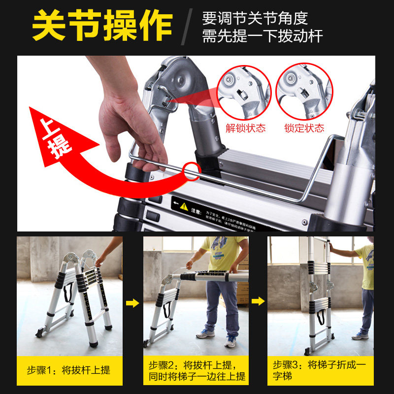 Lu Tai multi-function engineering lifting ladder Telescopic ladder Herringbone ladder Aluminum alloy folding superimposed thick household stairs