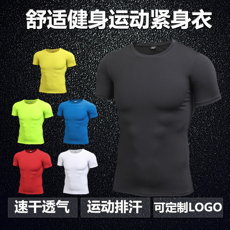 Sports Tight Fit Man Short Sleeve Fitness Clothing Suction Sweat Quick Dry Elastic Breathable Training Wear Workwear Custom Logo