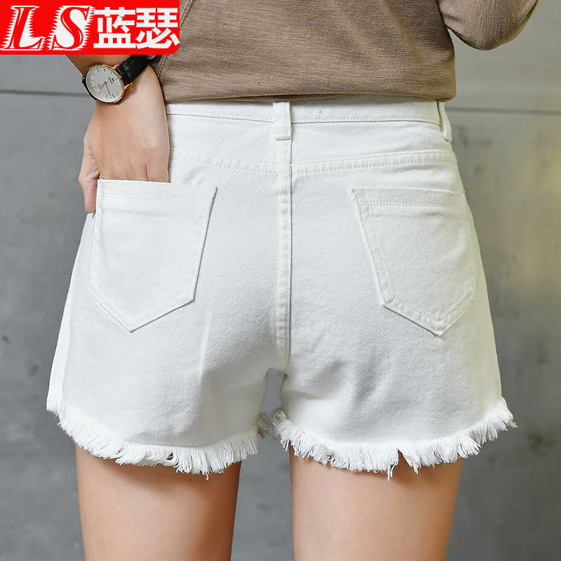 2021 new white high waist shorts women's summer Korean edition loose burr student wide leg pants black denim shorts