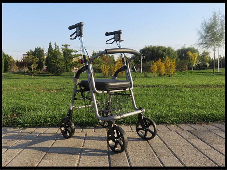 Elderly people folding light grocery shopping cart with four wheels can be pushed and can sit and walk electric bicycle walker