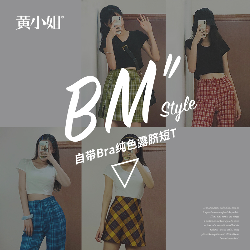 Lady Wong short sleeve dew cord T-shirt woman tight fit cotton round collar fashion blouse with chest cushion comfortable t-shirt