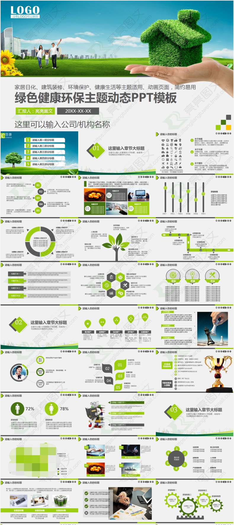 PPT template fresh and environmentally friendly and energy saving and emission reduction green ecological environment protection agricultural work summary report publicity